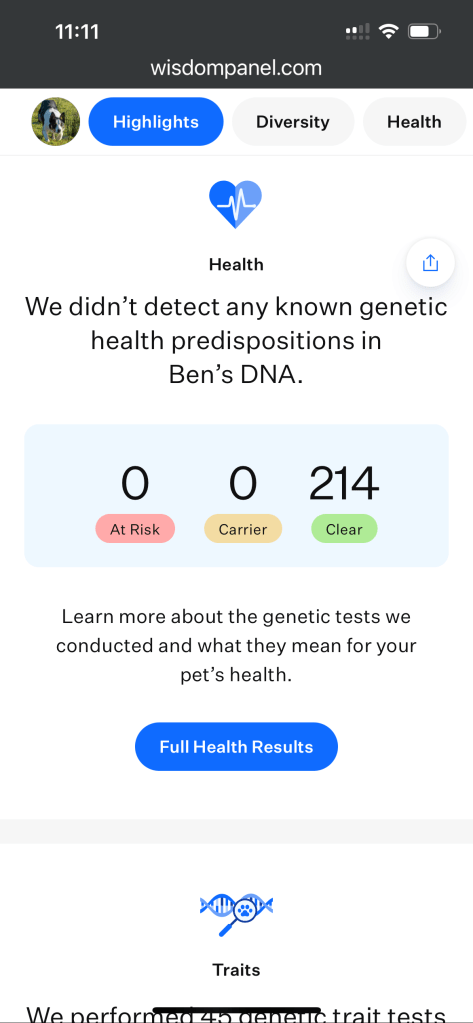 Both parents fully health tested on Mydog DNA (mother carries CEA, father clear for all 200+ tests).