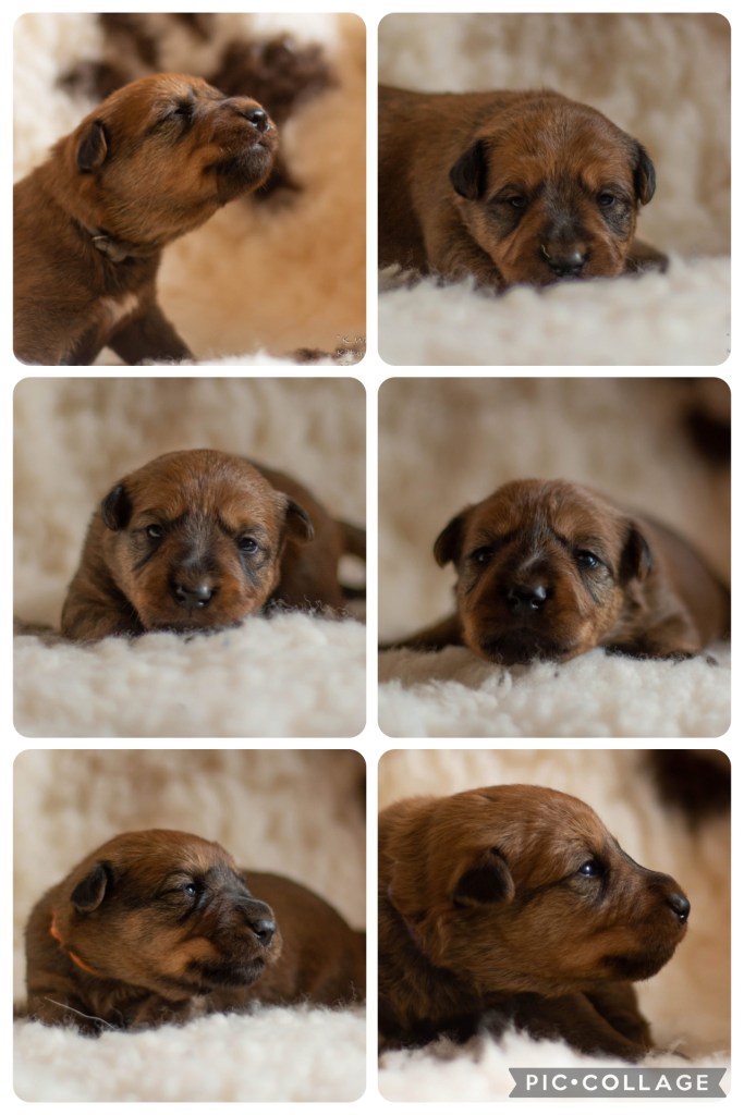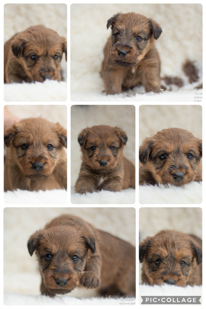 Both the oops litter of border collies (don’t worry, they are very well bred, just a bit early) and the long-awaited litter of Irish terriers are growing like mushrooms.