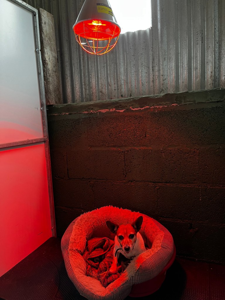 Heat lamps are available if need be for smaller or older dogs in winter.